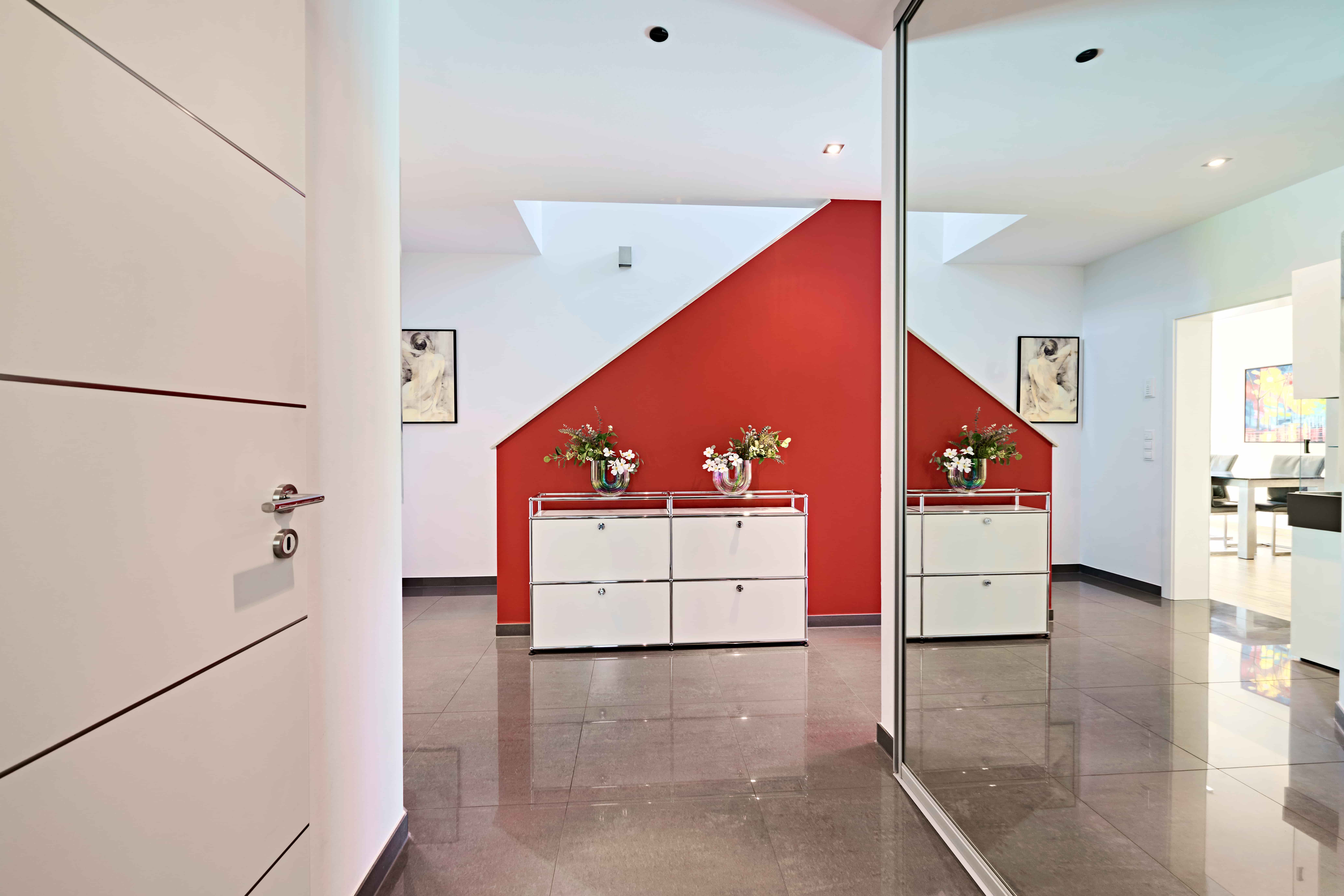 Bereits beim Betreten entsteht ein ruhiger, großzügiger Eindruck. Helle Flächen, klare Linien und große Fenster sorgen für eine offene Wohnatmosphäre.