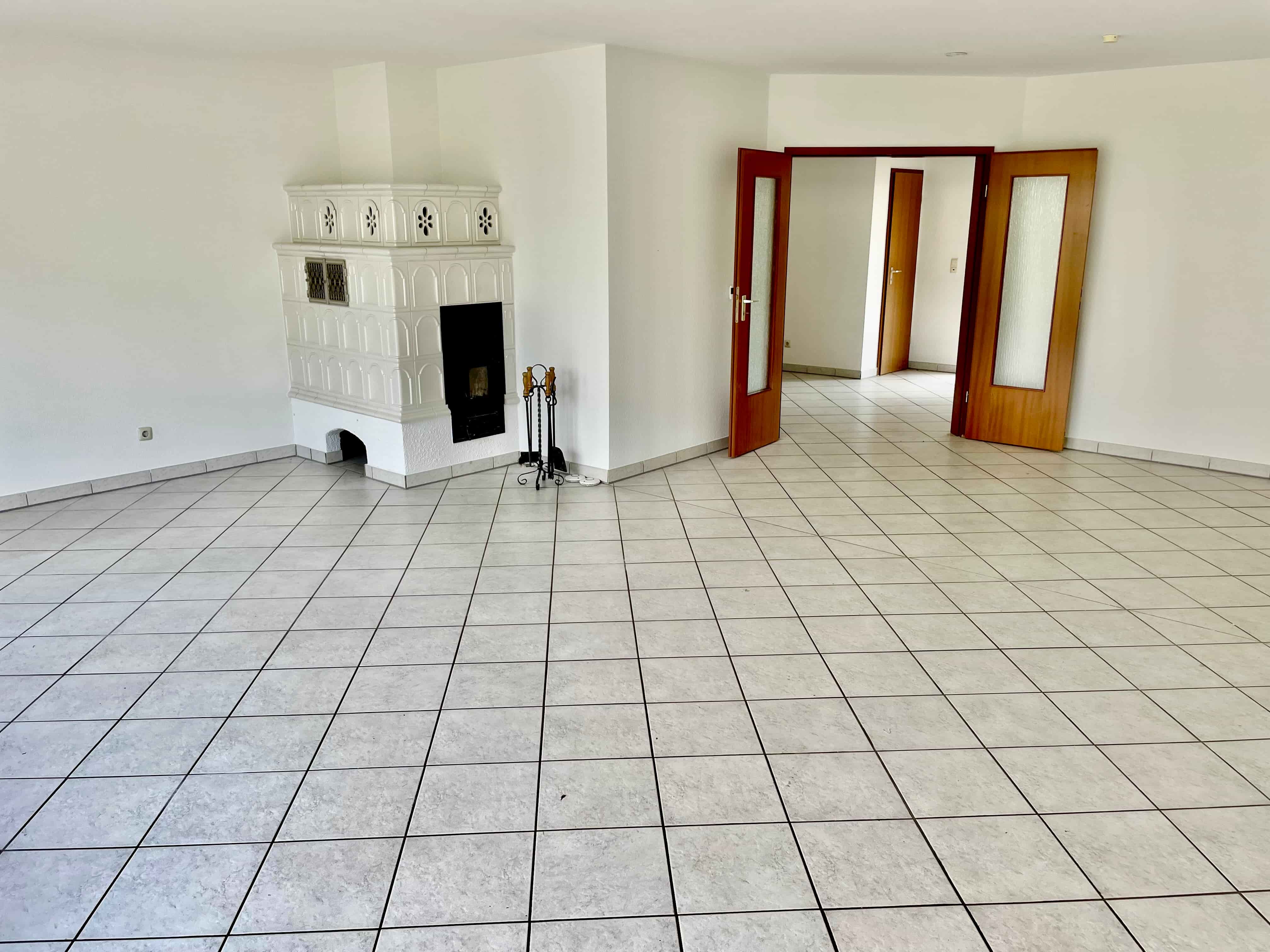 Im Erdgeschoss bildet das großzügige Wohnzimmer mit direktem Zugang zum Garten den Mittelpunkt des Hauses. Ein Kachelofen sorgt hier für eine behagliche Atmosphäre. Ergänzt wird diese Ebene durch die Küche sowie ein Gäste-WC.