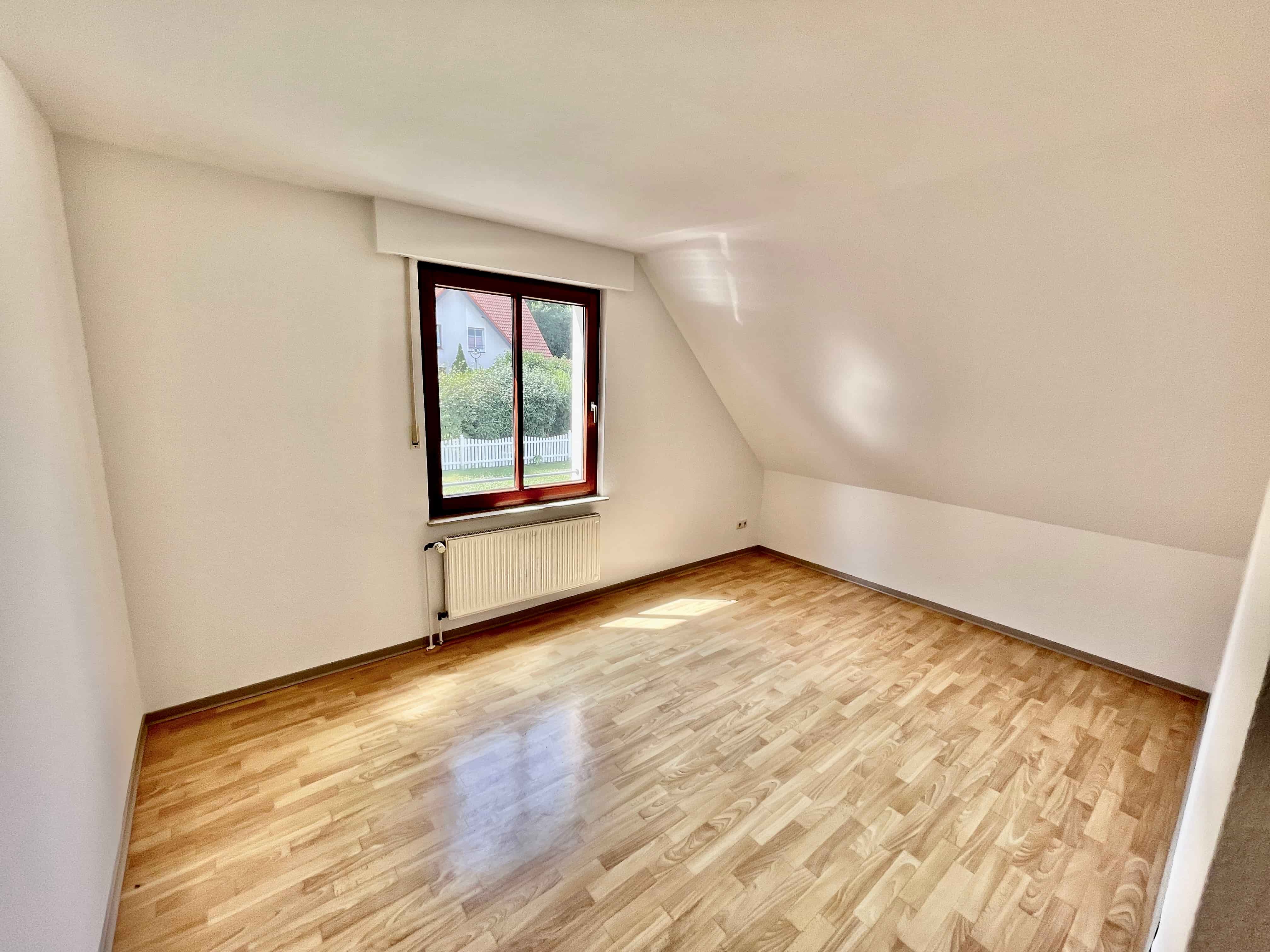 Im Ober- und Dachgeschoss stehen insgesamt vier Schlafzimmer zur Verfügung, die flexibel als Kinder-, Arbeits- oder Gästezimmer genutzt werden können. Das Tageslichtbad ist funktional ausgestattet.